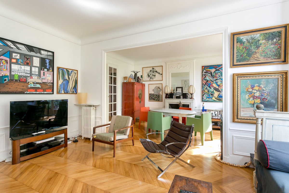 Paris-Auteuil, Large family and friendly apartment in a 1930s brick building revisited with all modern comforts. Beautiful layout, beautiful circulation, beautiful volumes, 5 rooms, 150 m2, double living room, dining room, double exposure, double glazing, 3 large bedrooms, 3 large beds, 2 bathrooms, kitchen on courtyard, parking, digicode, intercom, guard.