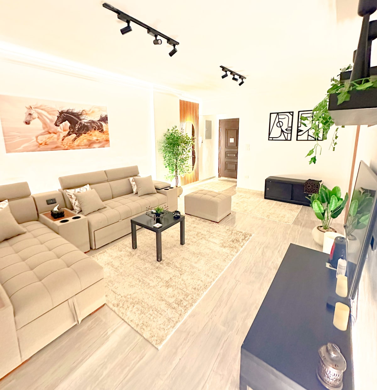 Welcome to our spacious 3-bedroom, 2-bathroom apartment! Our apartment is fully air-conditioned and With a 55" flat-screen TV and free internet. The kitchen is fully equipped with everything you need , including a refrigerator, stove, oven, and microwave. The apartment is also fully furnished with modern new furniture. Our apartment is perfect for families. The master bedroom features a comfortable king-size bed. The second bedroom has a queen-size bed, while the third bedroom has two twin beds.