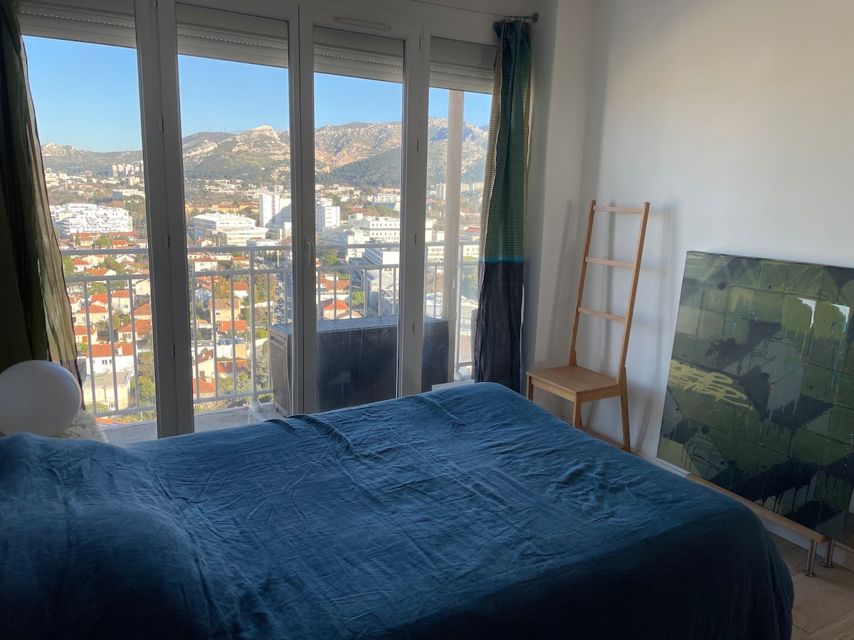 Next to the Calanques National Park, apartment renovated in 2024 with views of the hills, the Bay of Marseille and the Frioul Islands. Ideally located to go hiking and enjoy nature: direct access to the Calanques de Sormiou and Morgiou without going through the roads! Within a large villa and a very quiet residential area with free and secure parking. Ideal for a city break for couples, hikers, divers and climbers but not for partying ;-)