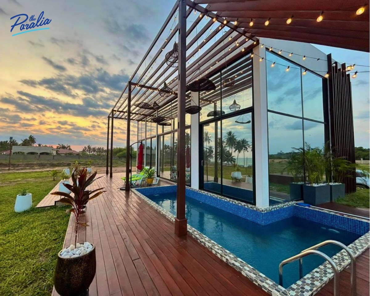 Embark on an extraordinary journey with theParalia, where we craft an unparalleled retreat for those craving the pinnacle of private luxury, get away and seclusion. Nestled in the outskirts of historical charm of Elmina, Ghana, unveils 1 private beach front glass villa at a private 5acres beach front property. Private beach+Private pool+Unimpeded sea views from all areas in Villa+Private front/backyards+Private cleaner/maid+Private chef+Private kitchen+24hr security. Note:Chef's at extra cost.