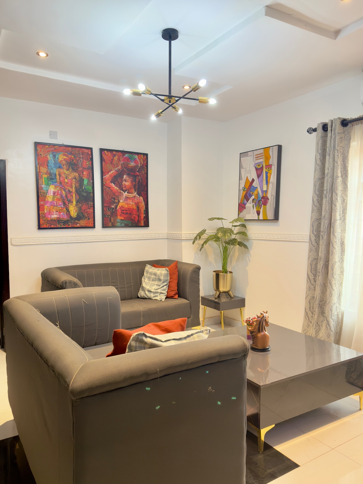 This beautiful apartment is located in a serene & secure environment & offers guests a home-away-from-home feeling.. Guests have access to fabulously-designed & decorated rooms/living room, a modern kitchen, Netflix/Prime streaming, unlimited internet, & 24/7 power supply (SEE HOUSE RULES ON ELECTRICITY ARRANGEMENT before booking). We deliver top-notch hospitality services to our guests, which makes us the perfect plug for your short & long term stays!