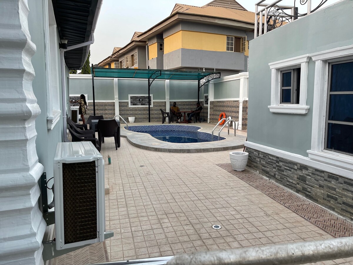 GolfVilla Abeokuta is a beautifully furnished, modern 3-bedroom short let Villa on 1300sqm property, located in the hills of Oke Mosan, Abeokuta, Ogun State. - Big screen TV & Satellite decoder in every room - Fitted Kitchen - Washing Machine - WiFi - Board Games - Private Swimming Pool - Table Tennis - Outdoor Grill Station - Close to Abeokuta Golf Club - Free Golf Cart - Outdoor CCTV - Electric Perimeter Fence - 24 Hours Electricity - Armed Guards - Complimentary Train Station Transfer