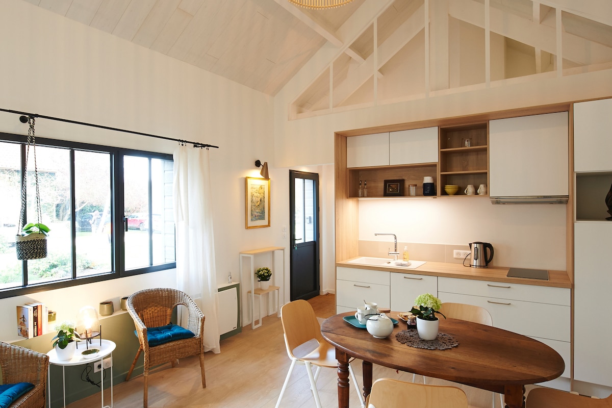 Comfy & modern wooden house, 1hr from Paris