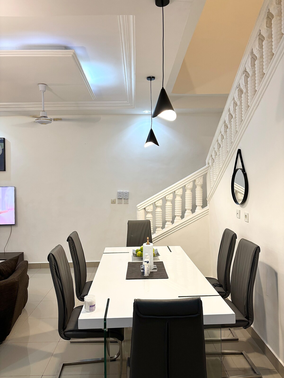 Discover our modern and impeccable house, located 5 minutes from the beach, near Pierre Manoel French High School and the airport. Ideal for business stays, family and friends, it offers three comfortable bedrooms, an open kitchen with central island, a bright living room and a dining room. The lively Fidjrossè district also offers many amenities, such as shops, restaurants, bars and supermarkets.