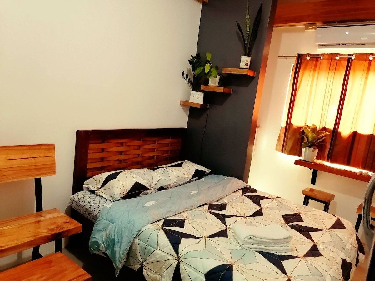 "Welcome to D'Rustic Haven-condotel! We're happy to assist you during your stay. If you need anything, please don't hesitate to reach out – my contact number is in the welcome guide. Our location offers easy access to bars, restaurants, malls, and more. Note that we don't provide free parking, but fee-based parking is available 24/7, managed by a third-party provider. Also, please be aware that the pool is under maintenance every Monday. Enjoy your stay!"