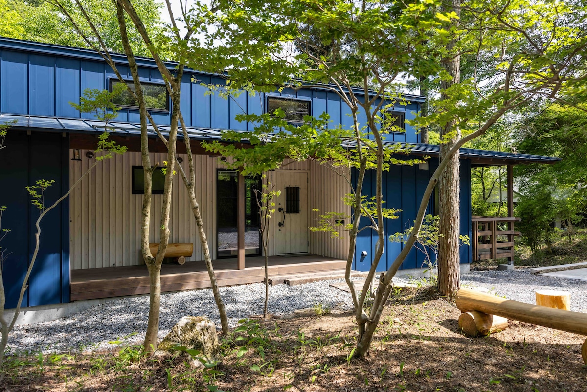 blue in green A quiet blue box embraced by layers of green. Nestled in the Ina Valley, surrounded by the Southern and Central Alps of Nagano, we offer a private retreat where you can fully immerse yourself in the changing seasons of Japan. Whether you seek peaceful solitude, warm moments with family and friends, or a workation that balances productivity and well-being, this is a space designed for your comfort and ease.