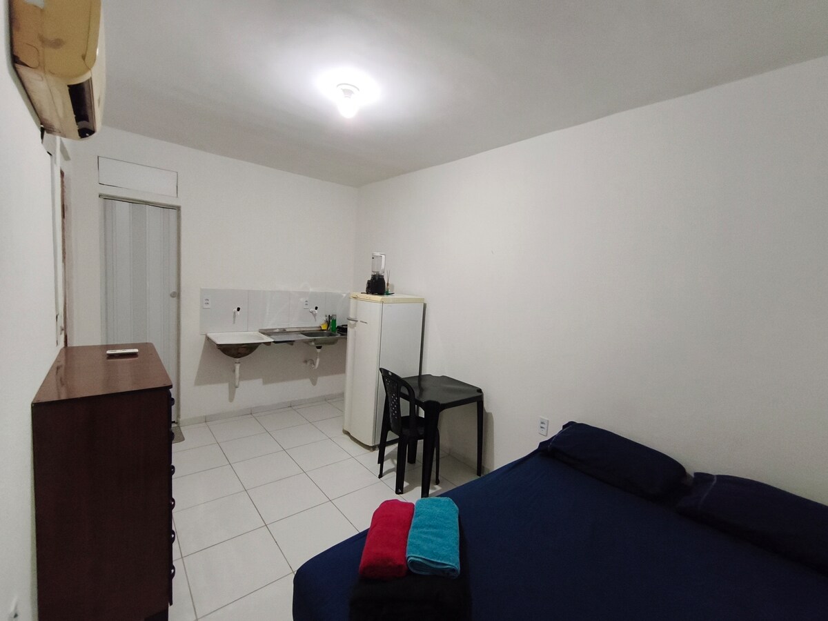 Ideal para tres pessoas, bem localizado, 8km de distância da Beira Mar, Praia de Iracema. Shopping Rio Mar Kennedy, North shopping. Mercado São Sebastião, Centro Fashion Fortaleza, Igreja Redonda... O quarto, é com uma cama de casal, e uma cama de solteiro.