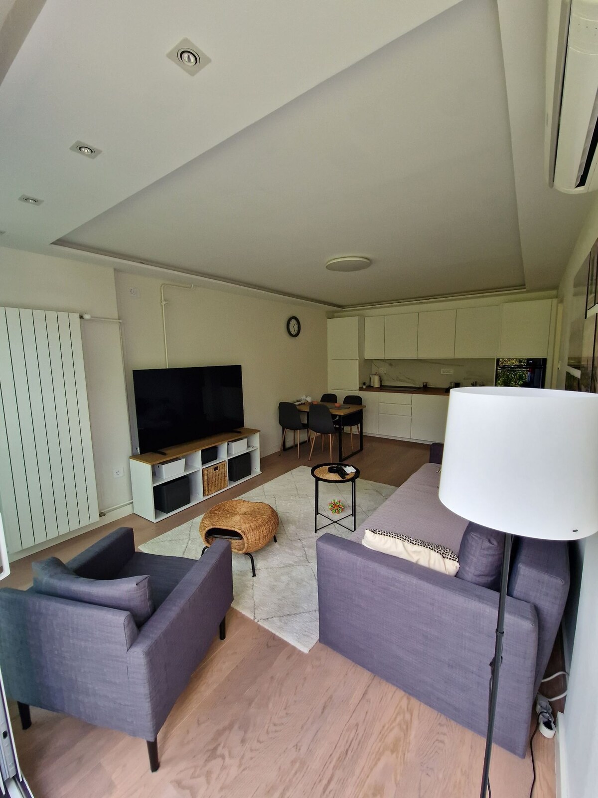 Modern, fully renovated apartment in New Belgrade; just a short walk from Sava Centar and Belgrade Arena. Located on the 1st floor in a quiet residential area with easy access to the highway and city center. Enjoy self-check-in, a comfy king-size bed, a fully equipped kitchen and bathroom, fast free WiFi, and a UHD Smart TV. Designed for comfort and convenience. Late checkout is available for an additional fee, depending on availability.