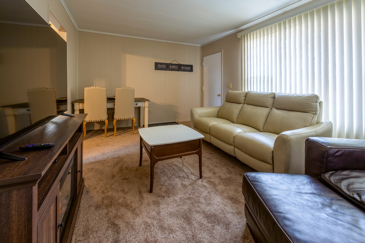 This convenient two bedroom, one bathroom duplex is newly renovated, fully furnished, and ready for your stay in Adair, IA. We designed it with the traveling professional in mind - clean, quiet and comfortable. Enjoy a full sized kitchen where you can make home cooked meals and quality beds and furniture to relax in at the end of your long day. We are confident you will enjoy your stay!