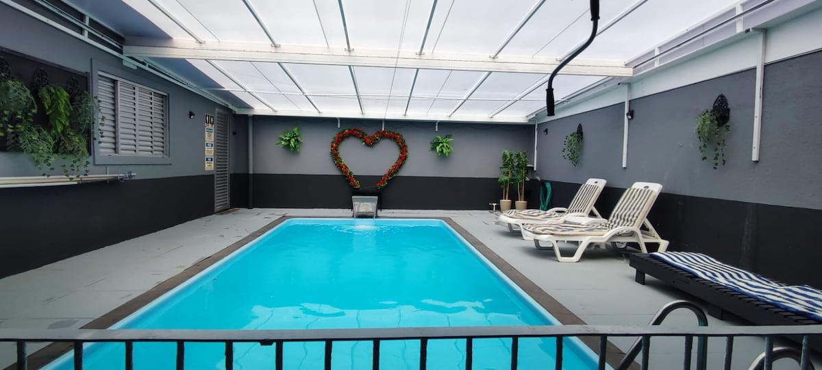 🌴 Including the items below Club with 154 m2 penthouse, for events, parties... 2 bedrooms✅, the bedrooms are priced separately, in case of doubt, consult before... 40 chairs ✅ 10 plastic tables ✅ 2 card tables ✅ 1 large marble table✅ Internet✅ TV✅ Sound✅ Party lighting✅ Kitchen gas✅ 2 bathrooms✅ Trampoline ✅ 1 Freezer 400 liters✅🍻 2 Refrigerators✅ 2 kiosks 🌴 Large pool 🏊 We do not provide toilet paper, pots, detergent, and cutlery