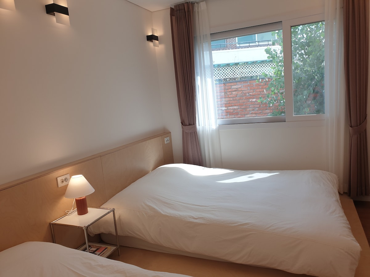 Hagwi Hale 3 is a peaceful and well-located stay—just 15 mins from Jeju Airport and 3 mins from Aewol Coastal Road. Enjoy a private terrace with café lights, a bright interior with a full kitchen, a queen bed, and a TV. Restaurants, cafés, and convenience stores are within walking distance. You have street parking and easy access to Aejo Road, making it simple to explore the island. This is a cozy, convenient space—perfect for couples, friends, or small families.
