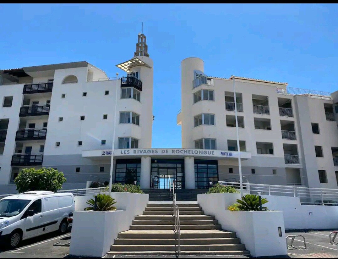 3 star apartment 3 air conditioning. ds Secure residence: ELEVATOR, PARKING, SWIMMING POOL - SEA VIEW from the 4th > DIRECT access to the beautiful beaches of ROCHELONGUE: very FAMILY FRIENDLY! 60 m2 - in front of the 20 m2 terrace: new electric blinds - Pretty room: 160 x 190 bed + travel cot & baby chair - VR- Living room : sofa bed, TV + DV - Rolling Shutter - Well-equipped kitchen with new features: Fridge + Freezer, Hood, faucet.. - Bathroom : new shower - Separate toilet Everything on site