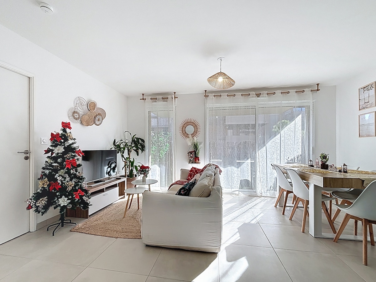 cocon 2 chambres, clim, terrasse, parking