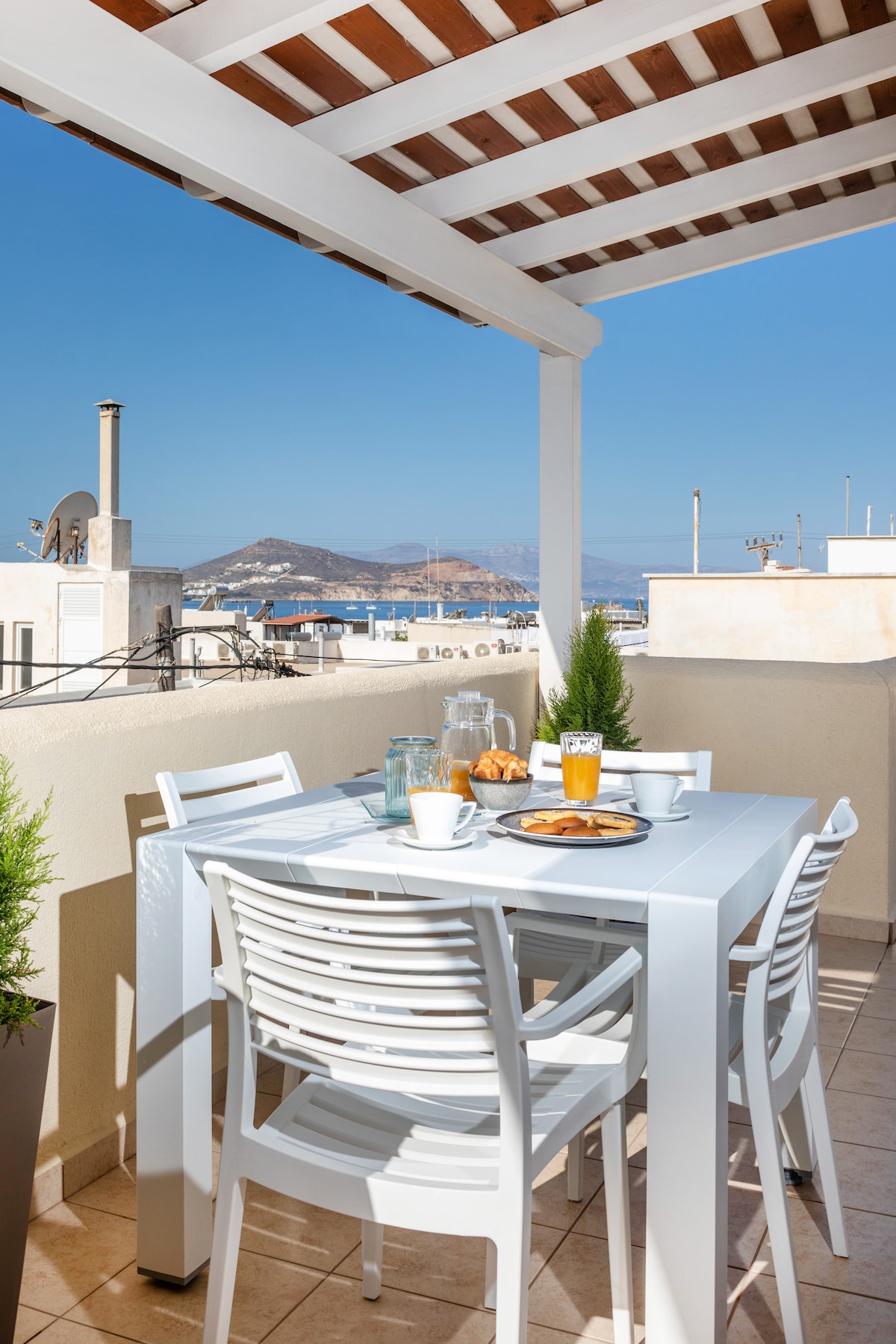 Feel at home in this cozy, modern 53 sqm apartment, just a 10-minute walk from the port, in a quiet and friendly neighborhood. Enjoy the spacious private terrace, ideal for coffee or evening drinks under the stars. Inside you’ll find a fully equipped kitchen, comfortable double bed, modern bathroom, Smart TV, Soundbar, and Netflix. We’re always happy to share local tips to help you experience Naxos like a true local. Book now!
