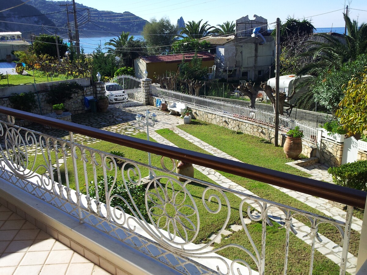 Top floor apartment with panoramic sea views over Ag. Gordios! Our apartment offers two balconies with sea view, fully equipped kitchen, free fast wifi and a big colorful garden. Ideal for couples or families with older kids looking for relaxation, peace and quiet. Take a deep breath as you feel the sea breeze on your face, relax reading you book on the balcony, enjoy sunbathing in our garden, listen to the birds' songs and the sea waves. A holiday to remember!