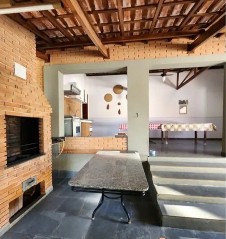 Our farmhouse at Fonte has a rustic style, is bright, airy, and has the most beautiful kitchen in Brazil with a wood-burning stove and all the cooking utensils! It has a beautiful garden with an orchard and flowers. There are 2 en-suites with queen and single beds and air-conditioning, 1 bedroom with 4 single beds, ceiling fan and bathroom in front, living room with 50" TV and Sky. Bed and bath linens are provided. It has a round pool and barbecue area. And a gourmet area with TV, sofa, table, bathroom and kitchen.