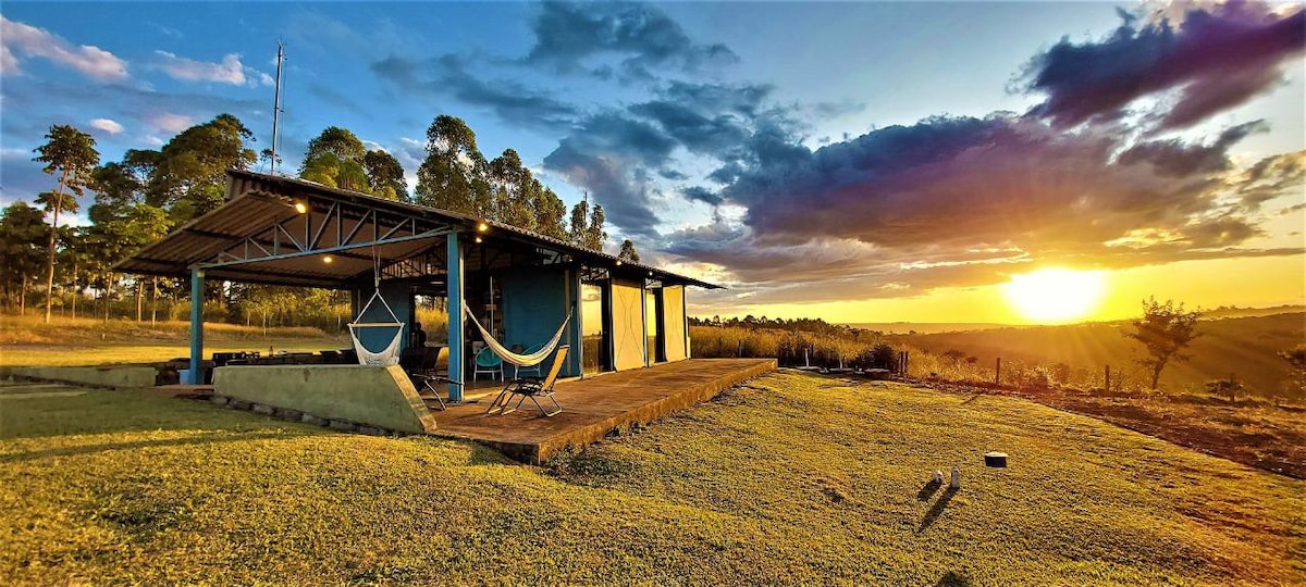 Estância Cury opens its chalet in the best romantic style to share with your love or even for two couples. Adapting the architecture of the Swiss chalet to our climate, relief and vegetation, coexist with nature and the modernity of a complete place to enjoy every second. Whether in our spacious hot tub for up to 8 people, by the outdoor fireplace, having a barbecue, a romantic dinner or watching a streaming service available on our 60-inch TV, every second will be remembered.