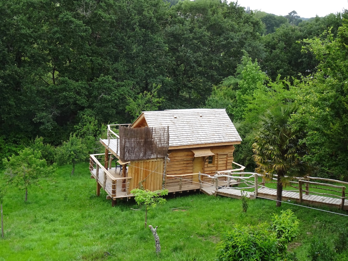 The "Le coeur de XANET" tree house, a unique, artisanal, fully insulated design, made by a local carpenter. We designed this property to offer you a break, a moment out of time. The wood offers all the exoticism you need. You will find all the comforts you want, in a "cabin spirit". Lots of light thanks to its many openings, facing the forest and the orchard. And we've also provided a private HOT TUB, for total relaxation!!