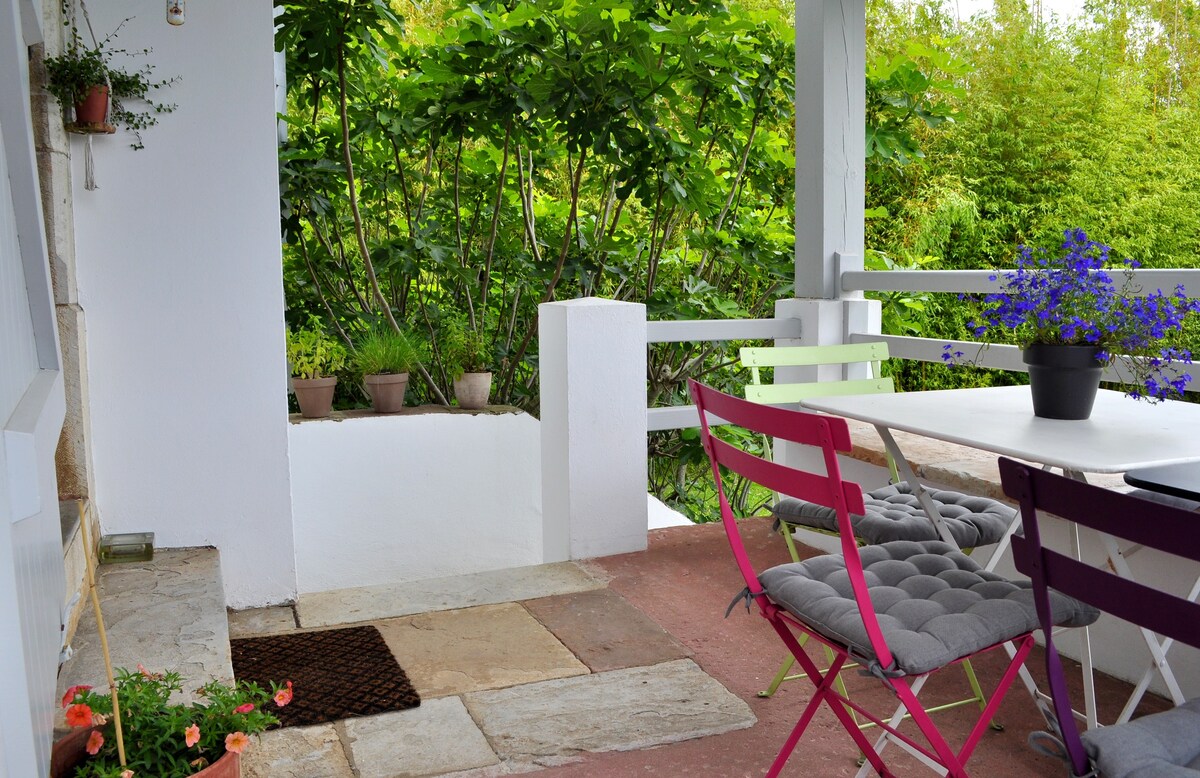 65 m2 duplex flat, plus 15 m2 mezzanine, in the heart of the village of Ahetze. The flat is in a former monastery, the many details of which (priory, etc...) give it an atypical charm. Designer furniture, sleeps three. You can relax and watch the stars from the mezzanine and bathroom. 5 minutes from the beaches of Bidart, Guéthary... Perfect location for discovering the Basque Country. 10 min from Biarritz train station, 15 min from the airport.