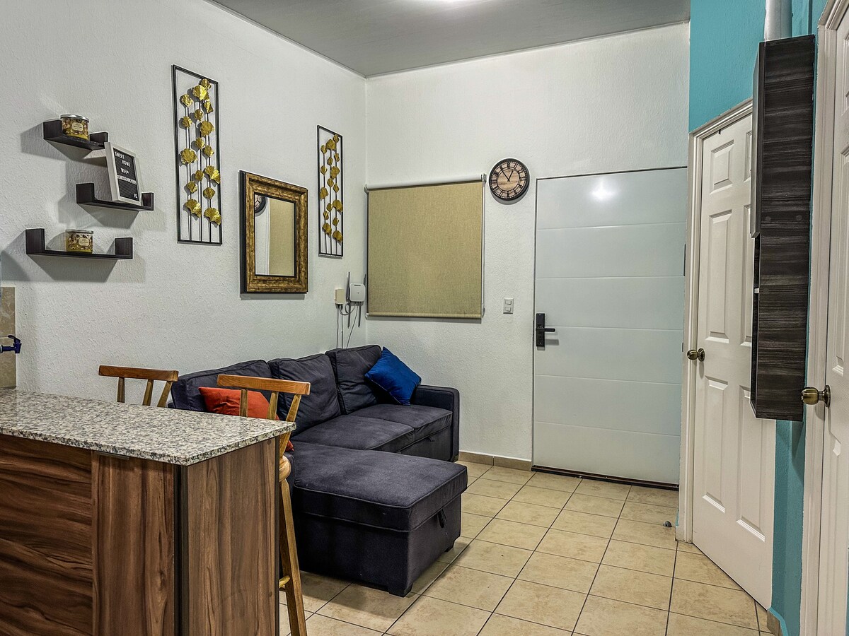 Small and modern accommodation, equipped for couples or families of up to three people. Located in downtown Ahuachapán, an ideal starting point to explore the Ruta de las Flores (Flower Route). It has a kitchen, private bathroom, air conditioning and Wi-Fi for a practical and comfortable stay. Perfect for travelers who want to be close to shops, restaurants, and tourist routes without complications.