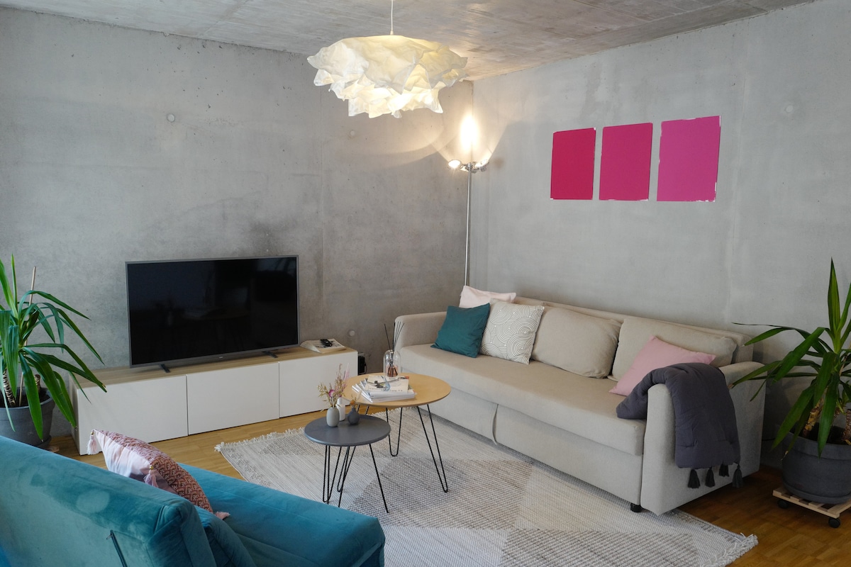 Nestled in the charming village of Ollon, this beautiful loft in a vineyard is ideal for exploring the region. Ski slopes and Lake Geneva are within 15 minutes. Enjoy hiking, biking, thermal baths, museums, and many other activities nearby. The village offers a coffee shop, butcher, creamery, restaurants, and a pizzeria. The loft accommodates up to 5 guests with 1 double bed and 2 convertible sofas.