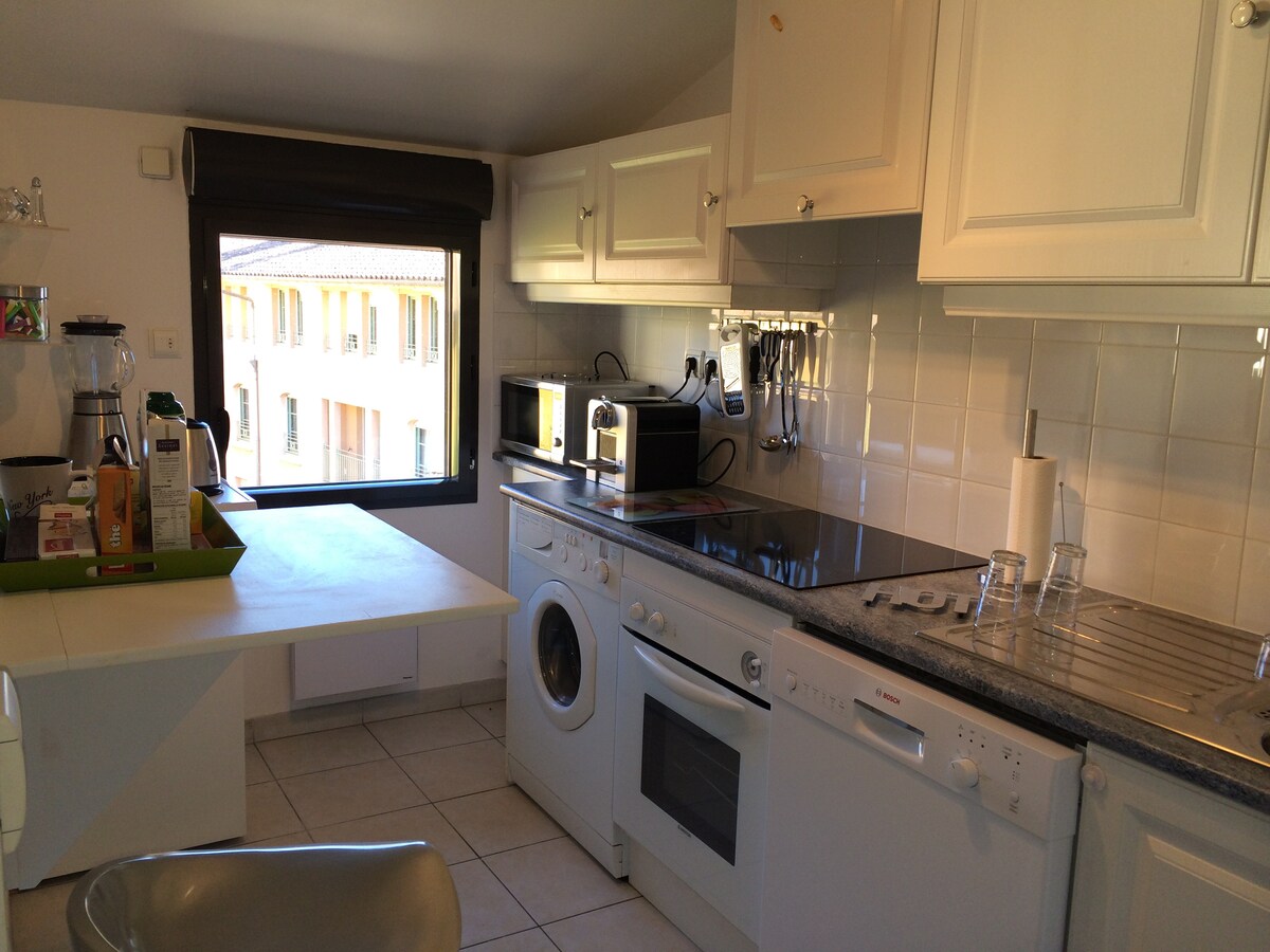 Top of Cours Mirabeau! Facing the King René fountain, Superb 3-bedroom apartment in a gated residence, indoor garden and private parking in the basement with direct access to the floors by elevator (optional parking at the price of €20/day). Sunny apartment with all comforts on the 3rd and top floor, with view from the terrace of the interior garden and the cloister of the Oblates. Facilities: Wi-Fi, 2 TVs, kitchen with all appliances, bathroom separate from the toilet. Ideal for enjoying Aix and its festivals on foot!