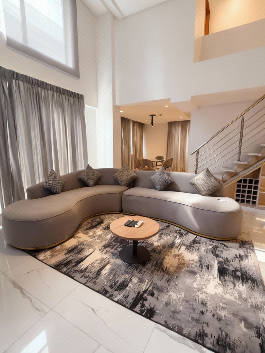 We’re thrilled to introduce STAYS BY TAGUS, our luxurious shortlet apartment nestled in the secure and tranquil surroundings of Lekki, Lagos. This exquisite 3-bedroom penthouse suite is located within the exclusive Pinnock Beach Estate. With lush greenery, the stunning 180-degree terrace balcony overlooking the Lagoon, is a perfect spot for an evening drink. Experience comfort and elegance in a setting designed for relaxation. We look forward to hosting you!