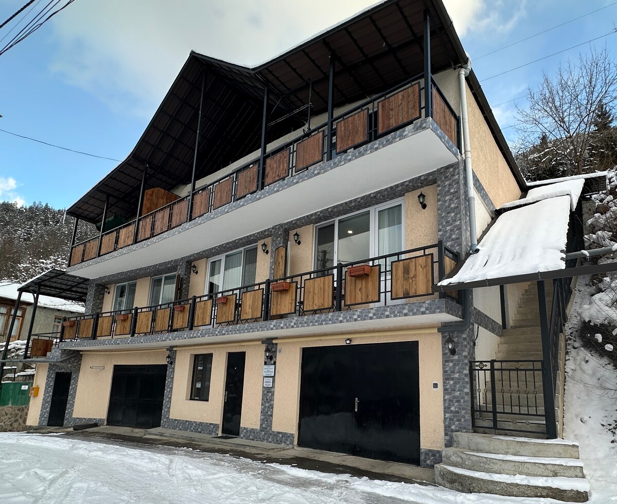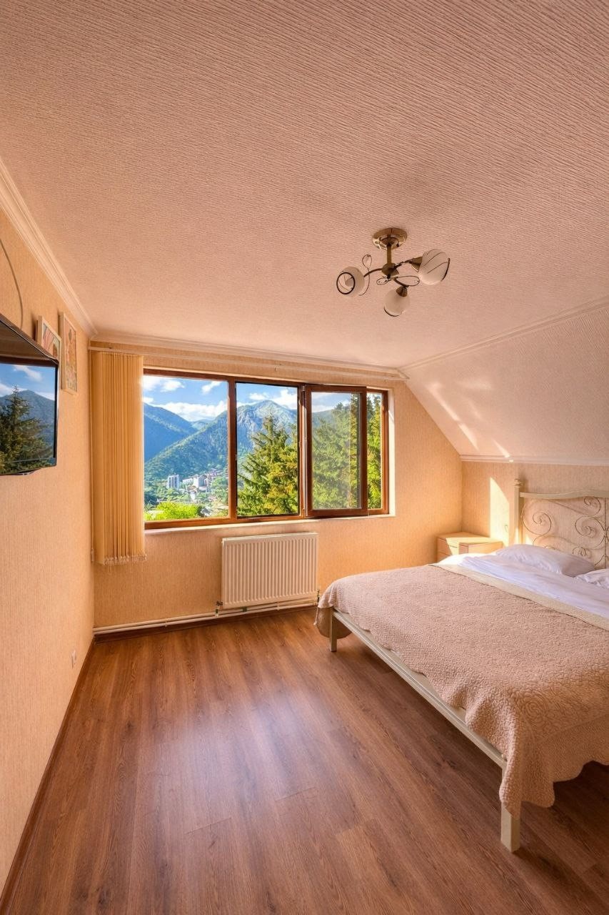 Woodland Borjomi - You’ll love the comfort and coziness of this charming place to stay. Our charming mountain hotel offers beautifully designed rooms with panoramic mountain views. Each room is equipped with cozy linens, modern amenities, and large windows to let in the natural beauty of the surrounding landscape. Whether you're here to explore scenic hiking trails, or simply relax in the peaceful surroundings, this is your ideal getaway.