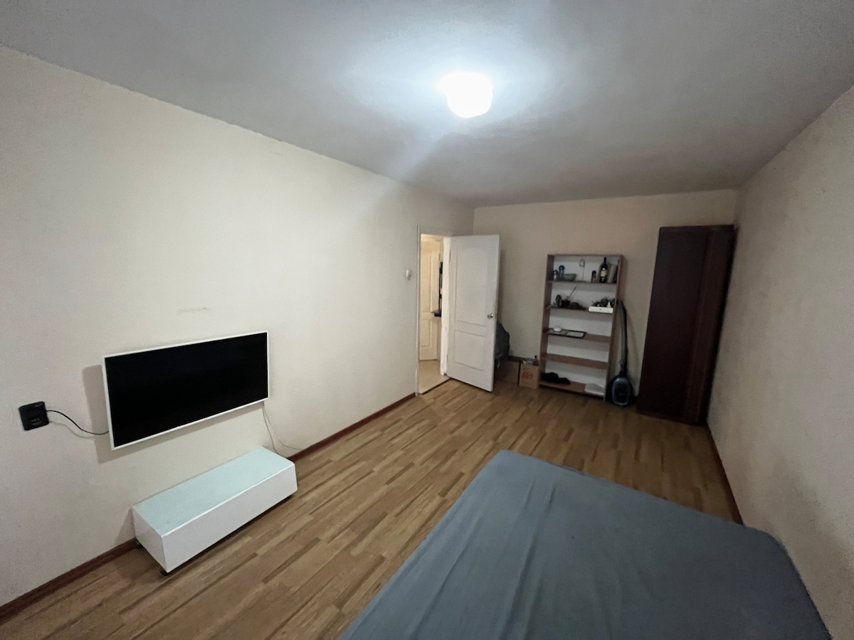 Reload in this calm and stylish place. The apartment has everything for your rest and comfort. The bedroom has a smart TV with internet , a comfortable bed and an additional sofa for relaxing . The kitchen is equipped with an electronic kettle and a microwave with a built-in new refrigerator, a gas stove is all for your use. The bathroom has a washing machine , hairdryer . There are also small appliances like an iron, a dryer and all other accessories , terry snow-white towels as well.