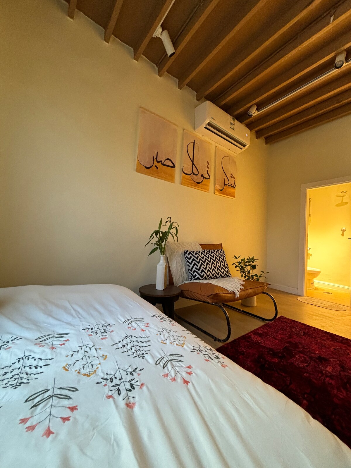 Elegant studio consisting of a bedroom, a bathroom and a living room containing: - 75 inch smart TV with the following (YouTube, Netflix) - Microwave, refrigerator, kettle, steam iron, air freshener, Wi-Fi. Close to all services and easy to reach: TeamLab 3 min Al-Balad 5 min Al-Hamra Corniche 7 min The port 8 min King Abdulaziz University 10 min Abdullah Al-Faisal Stadium 12 min Al-Haramain Train 15 min Airport 25 min ✅ Self-check-in ✅ Available (towel, shampoo, shower gel, soap, slippers)