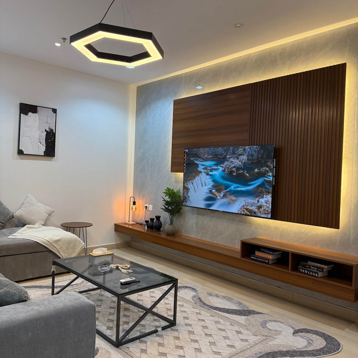 شقة مودرن هادئه بدخول ذكي بتصميم راقي في موقع مميز قريبة من برج الخرج وجميع الخدمات