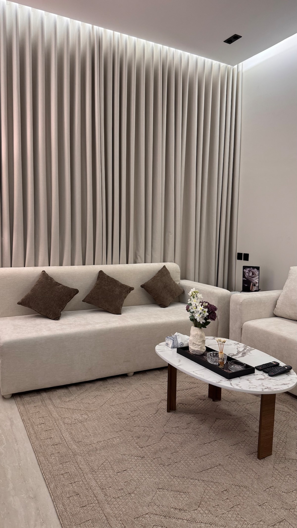 استمتع بإقامة راقية في شقة فاخرة ضمن مساكن ترف ، تجمع بين الأناقة والهدوء، سرير ماستر مريح، كنب للاسترخاء، تلفاز مع Netflix وOSN، إنترنت سريع، ودورة مياه مجهزة بالكامل. موقع مميز قريب من البوليفارد، المقاهي الراقية، والمرافق الحكومية. نظافة مثالية وتغيير جميع المقتنيات بعد كل ضيف لضمان راحة تضاهي الفنادق!
