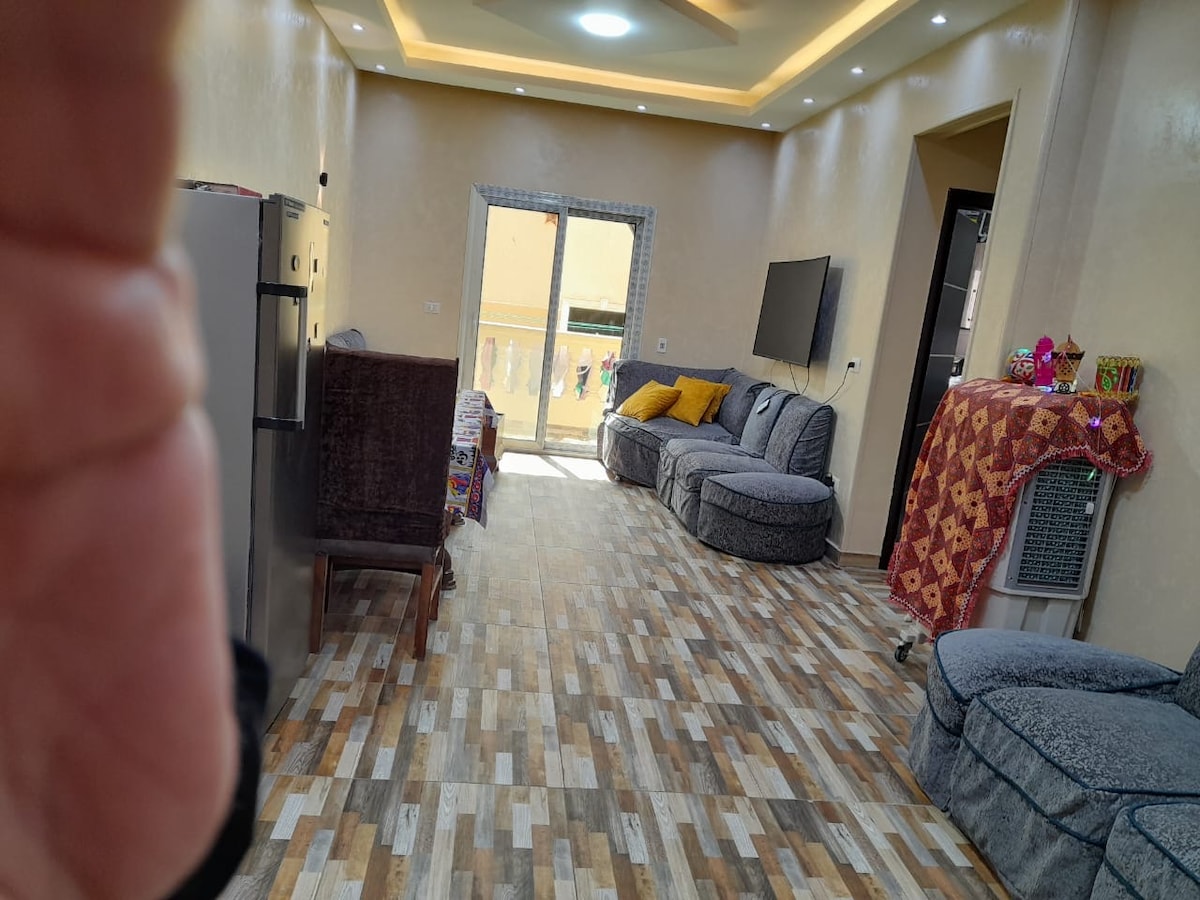 🏡 Luxury apartment in Obour Spacious and fully-furnished apartment with modern furniture. It has two bedrooms with comfortable hotel beds, a modern salon with smart TV and Wi-Fi, and a fully equipped kitchen. 🛁 Luxury bathroom with soap, shampoo, and free shower gel for all guests. It is located on the third floor (no elevator), in a prime location in a recreational area, near Carrefour Obour and the airport. ✅ Featured Services: • Air conditioners • Free cleaning for long stays • Automatic lighting when power is out • Possibility of providing private transportation upon request Perfect for families and young people, and better than luxury hotels ✨
