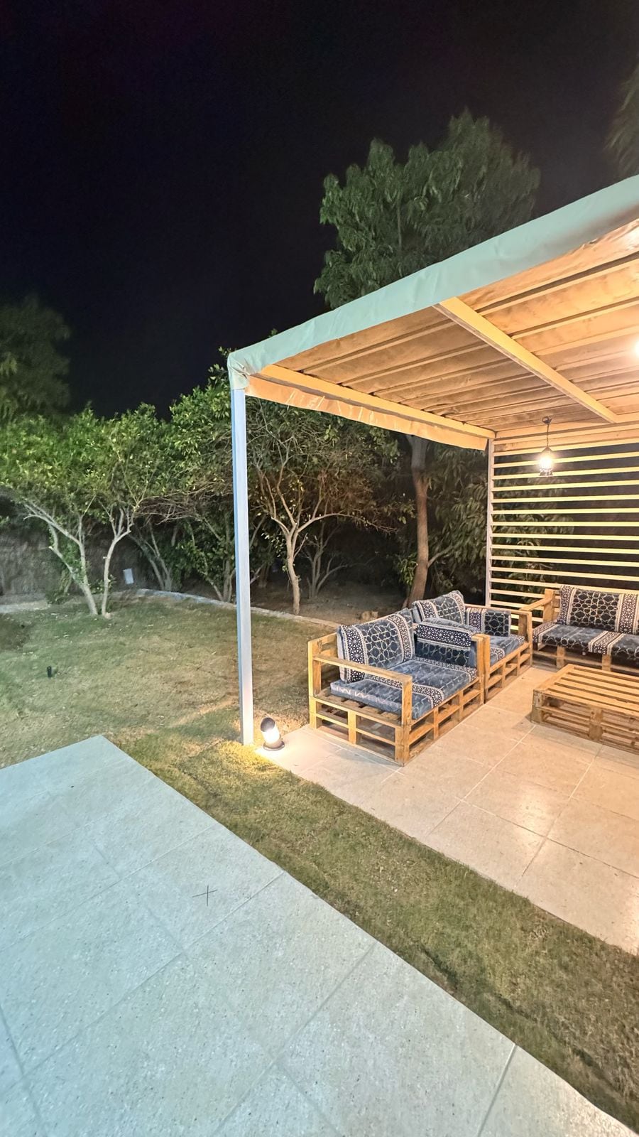 Escape to Tahwah, where ancient palms meet mountain majesty in Wadi Sadr. This intimate one-bedroom farmhouse offers pure AlUla authenticity—colorful tiled gardens, handmade palm woods seating, and towering date palms creating your private oasis. Modern comfort inside, untouched nature outside. Perfect for stargazing, sunrise coffee, and desert serenity away from tourist crowds.
