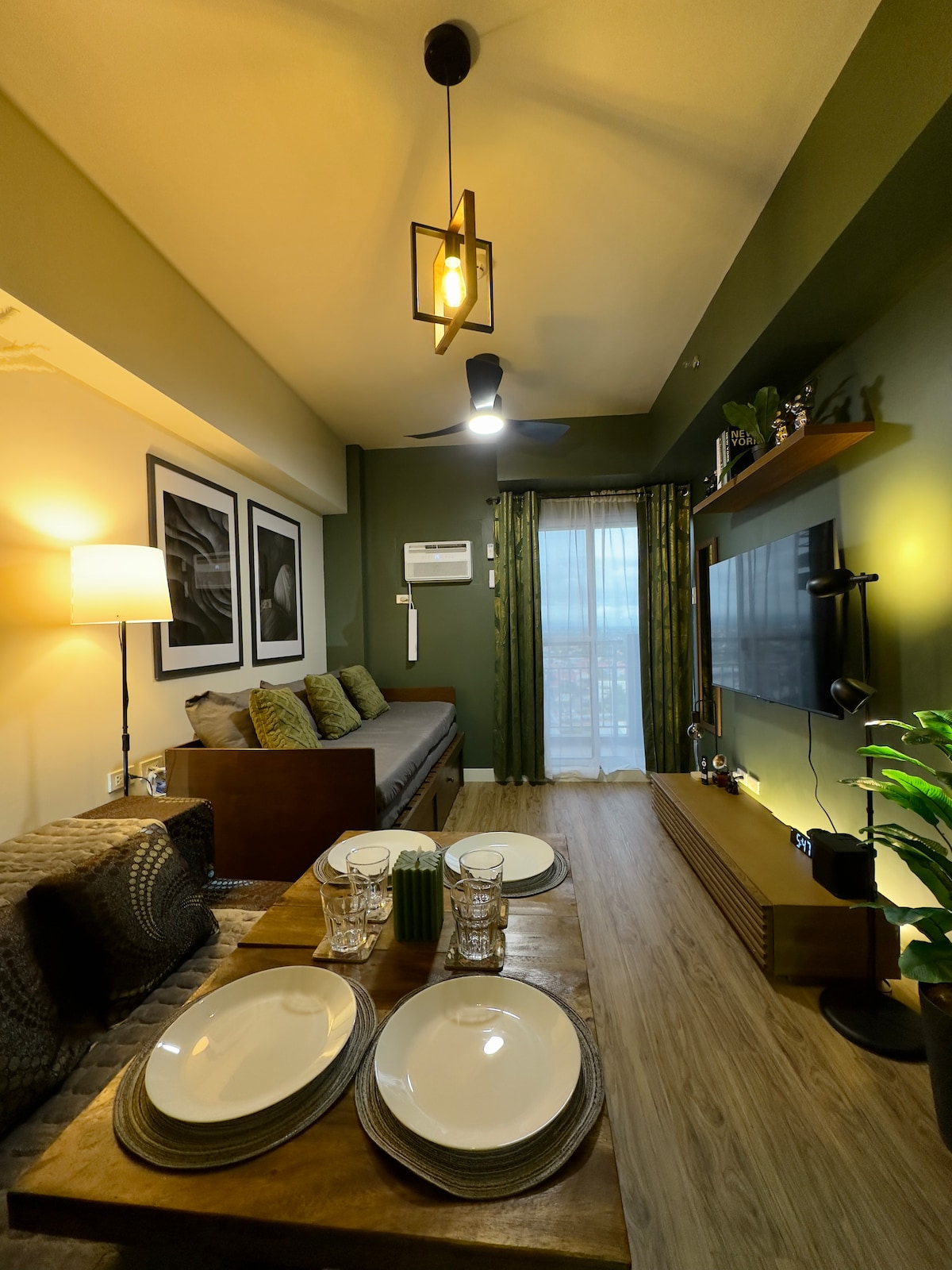 Our 1 bedroom unit with balcony has a full double size bed with pull-out bed, a kitchenette where light cooking is allowed. Unit has its own bathroom, 55” Smart TV with Netflix, Unli WIFI and a recliner sofa where guests can comfortably binge-watch! We also added Echo Show w/ Alexa (Spotify ready) The place is just a 3-5 minute walk to SM southmall and very accessible to almost everything. The unit is perfect for responsible guests who are traveling by themselves or their partner and child.