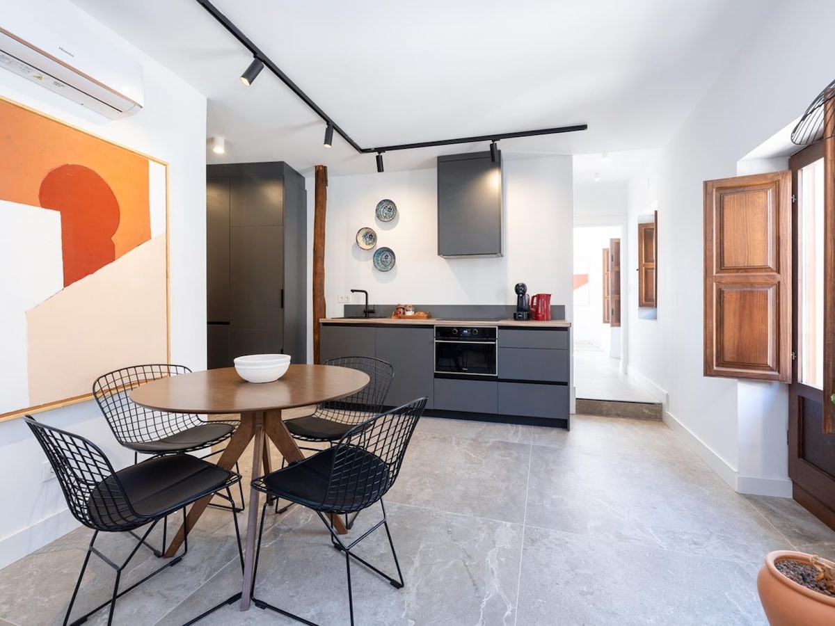 Apartment in the center of Granada, a few meters from the Albaicín neighborhood. The building is from the 17th 17th century, with a central Andalusian-style courtyard. Located near Puerta Elvira, Gran Via, the Cathedral, Jardines del Triunfo, and other places of interest. The apartment has good access and bus stops are very close. It is bright, with original high ceilings of wooden beams, with a cobbled Granada patio with a central fountain where you can relax after visiting the city.