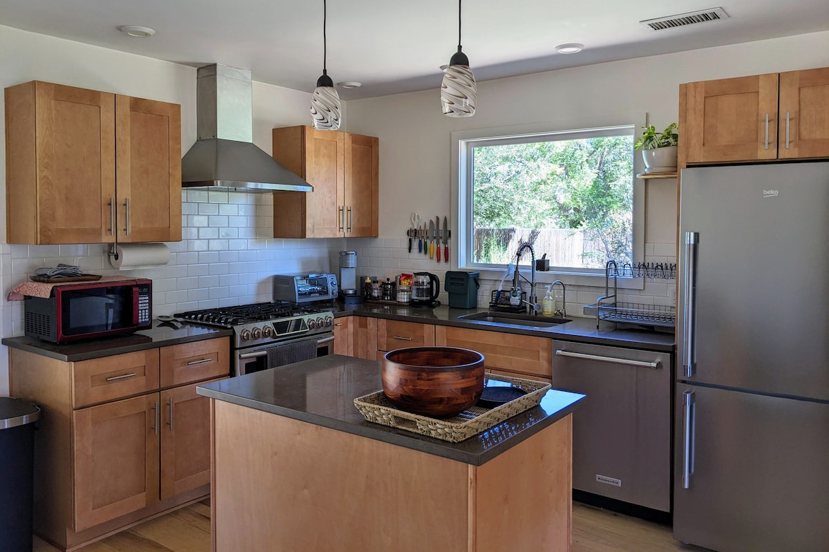 Have fun with the whole family at this 2-bedroom, 1-bath newly renovated vacation rental located in the heart of Albuquerque. This home's central location puts you close to the University of New Mexico, major hospitals, and Nob Hill's many coffee shops and local restaurants. After a day on the town, return home to a long rain shower and make some mouthwatering eats from the kitchen featuring a double oven, pot filler, and prep sink. Family friendly with style adults will love.