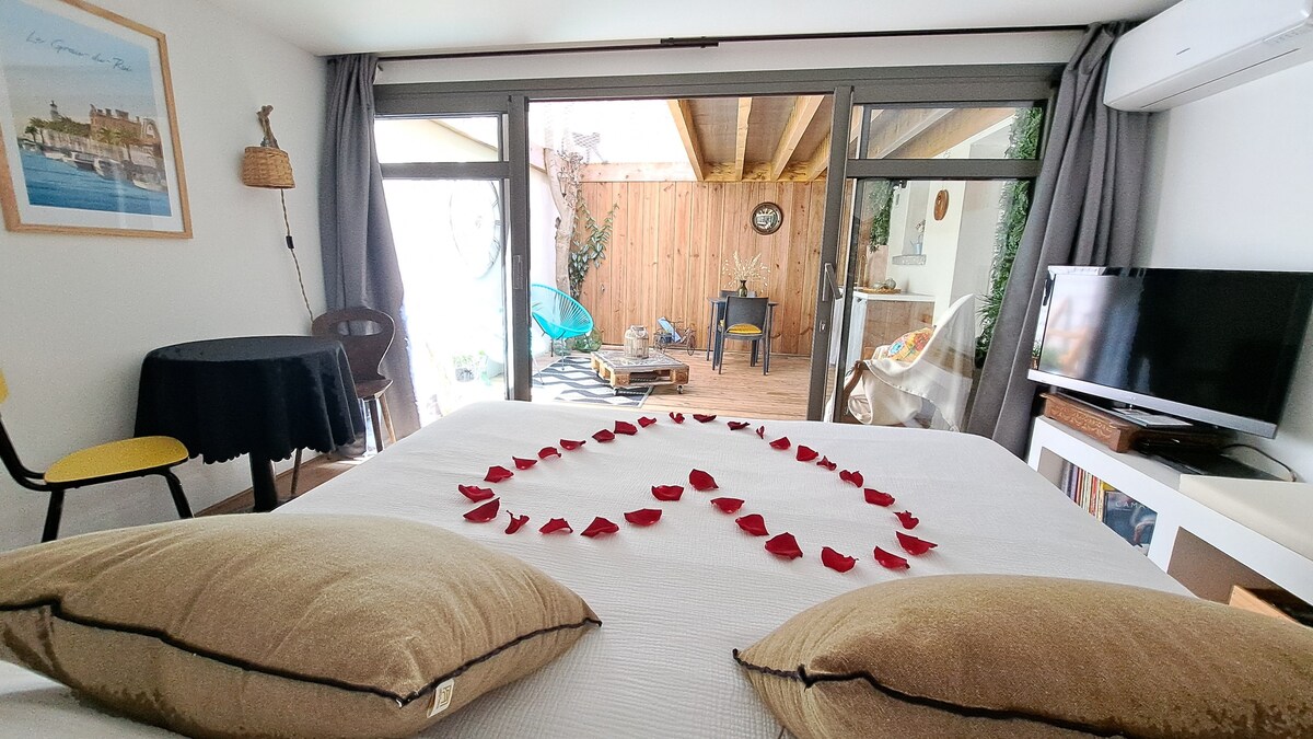 Ideal for a romantic getaway or an unusual stay: the coastal shelter located in the heart of Sauzet will offer you comfort and privacy. Our totally independent suite is equipped with an indoor Spa and a terrace with table, swing, brazier, all quiet and out of sight, the private parking (inside the courtyard) will ensure easy and secure parking. Available options: - Breakfast €20 - Champagne €40 - wines (red, rosé, white of your choice) €8 per bottle