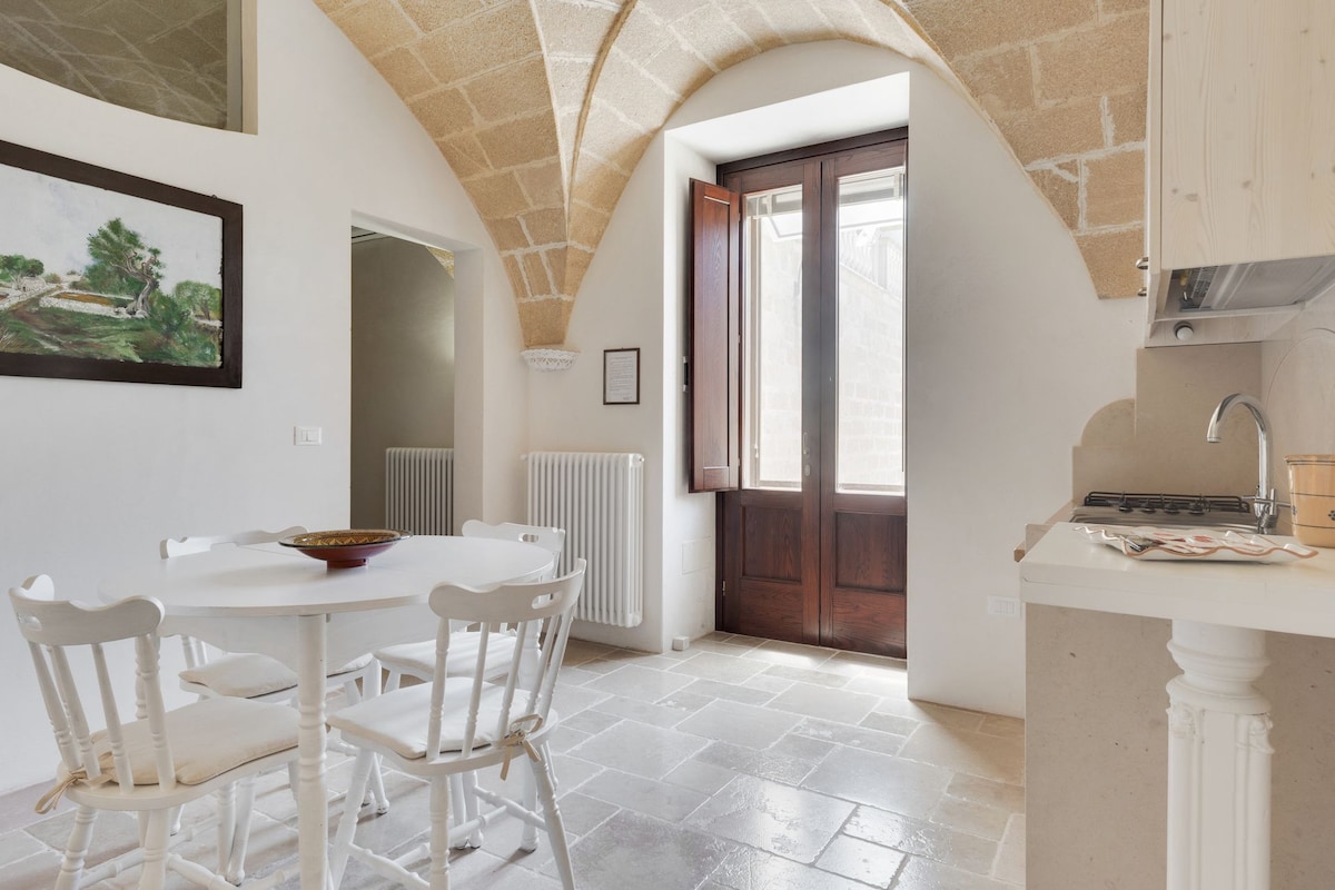 Il complesso è parte di una antica masseria ristrutturata dall' Architetto Luca Zanaroli. L'appartamento si trova nel cuore del centro storico di Patù, antistante la storica Piazza Indipendenza a pochi minuti dal mare e dai maggiori centri d’interesse storico e culturali. Informiamo la nostra gentile clientela che nella nostra struttura è presente il rilevatore di gas combustibile ed è igienizzata e sanificata seguendo le linee guida del Ministero della Sanità.