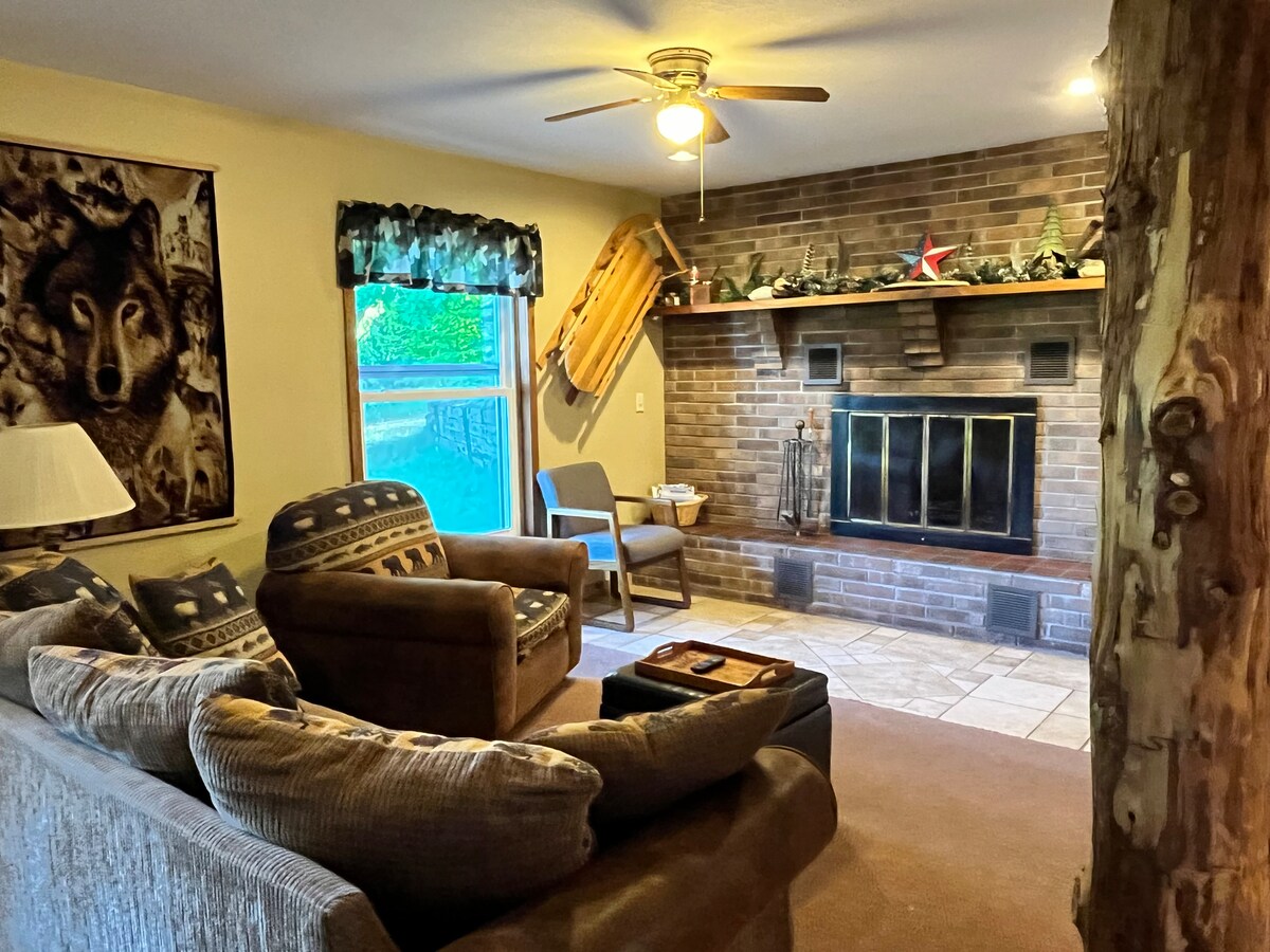 Enjoy this secluded cabin anytime of year. Located near trail 8 /H-58 for day trips in any direction. Cabin is set up with 2 Queens and accommodates 4 people comfortably. Two propane fireplaces & front room with beautiful view of private lake. Propane Weber for grilling , hot shower , stocked kitchen, washer and dryer. Fire pit for bonfire with wood for purchase on site. TV with HIGH SPEED INTERNET. Most likely will see and or hear a wild animal.