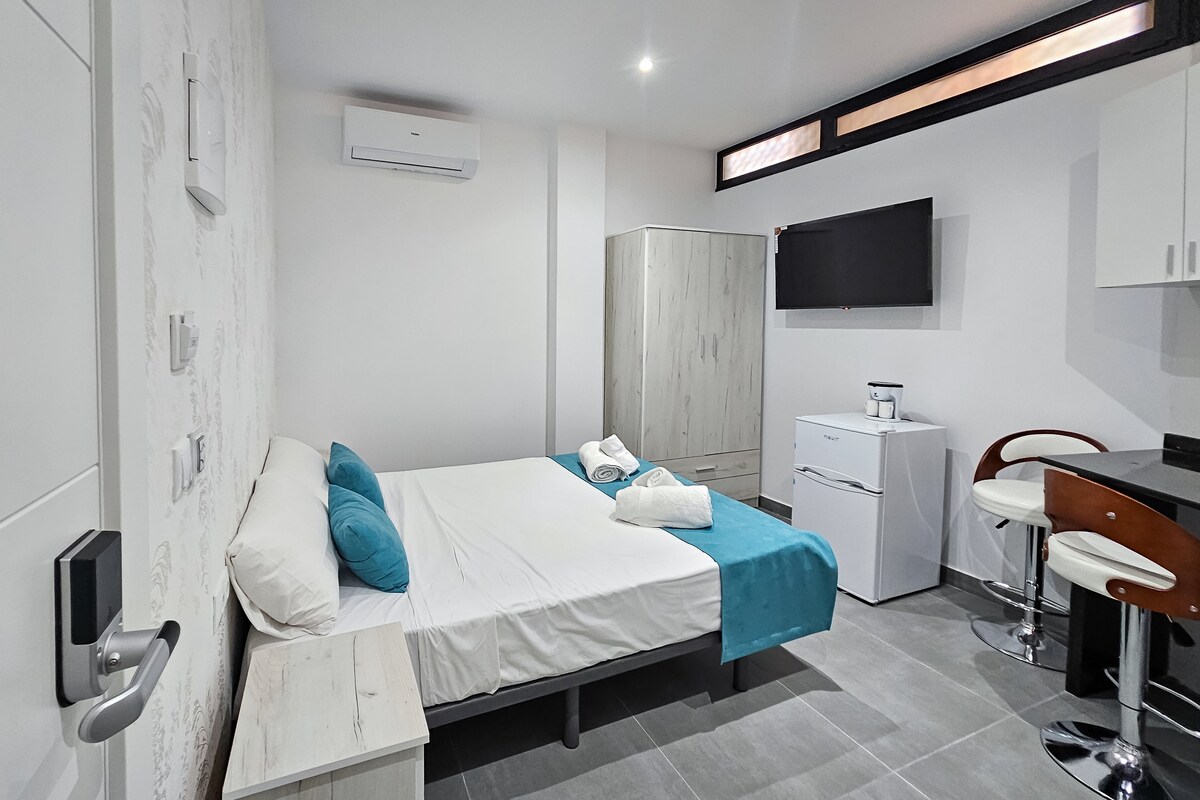 Spacious room with buffet breakfast included, with all its equipment in a recently renovated building, in an industrial style. All our rooms feature air conditioning/heating, plasma TV, fridge, towels and sheets, free Wi-Fi. With an unbeatable location, located in Alicante's old town, close to Postiguet beach, Esplanade, town hall, port and tourist attractions.