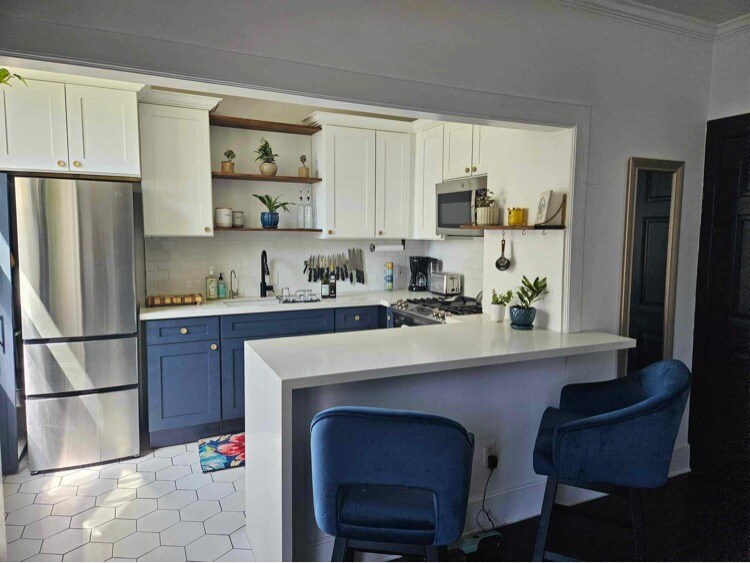 Rafter ceilings, coastal farmhouse furniture, and a white-washed, sandy color palette bring the tropical vibes inside. Families can take toys to the beach to play by the shore. Located on the second floor and includes one car garage parking spot. The bungalow is a block away from Corona Del Mar Beach in the "Flower Streets," surrounded by multimillion dollar homes. CDM Village—known for quaint shops, café’s, bakeries, and restaurants—is just around the corner. Disneyland is 20 miles away.