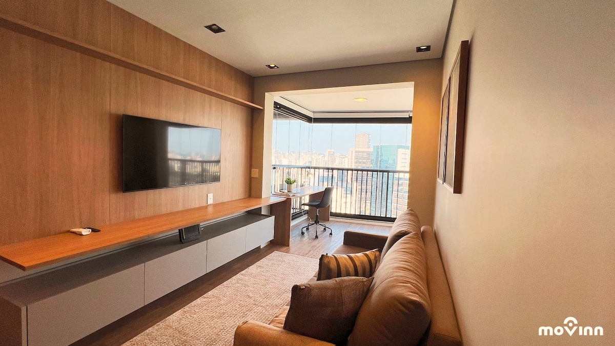 Brand new apartment, with a contemporary style, of a high standard and very well located, with a privileged view of Allianz Parque. Next to shopping malls, various businesses, means of transport, parks, tourist attractions and business buildings. The studio is complete, with a comfortable queen bed, Smart TV and Internet. Kitchen with all utensils, cooktop, refrigerator and microwave. With parking (rotary). Close to everything, cozy, perfect for experiencing fantastic moments.