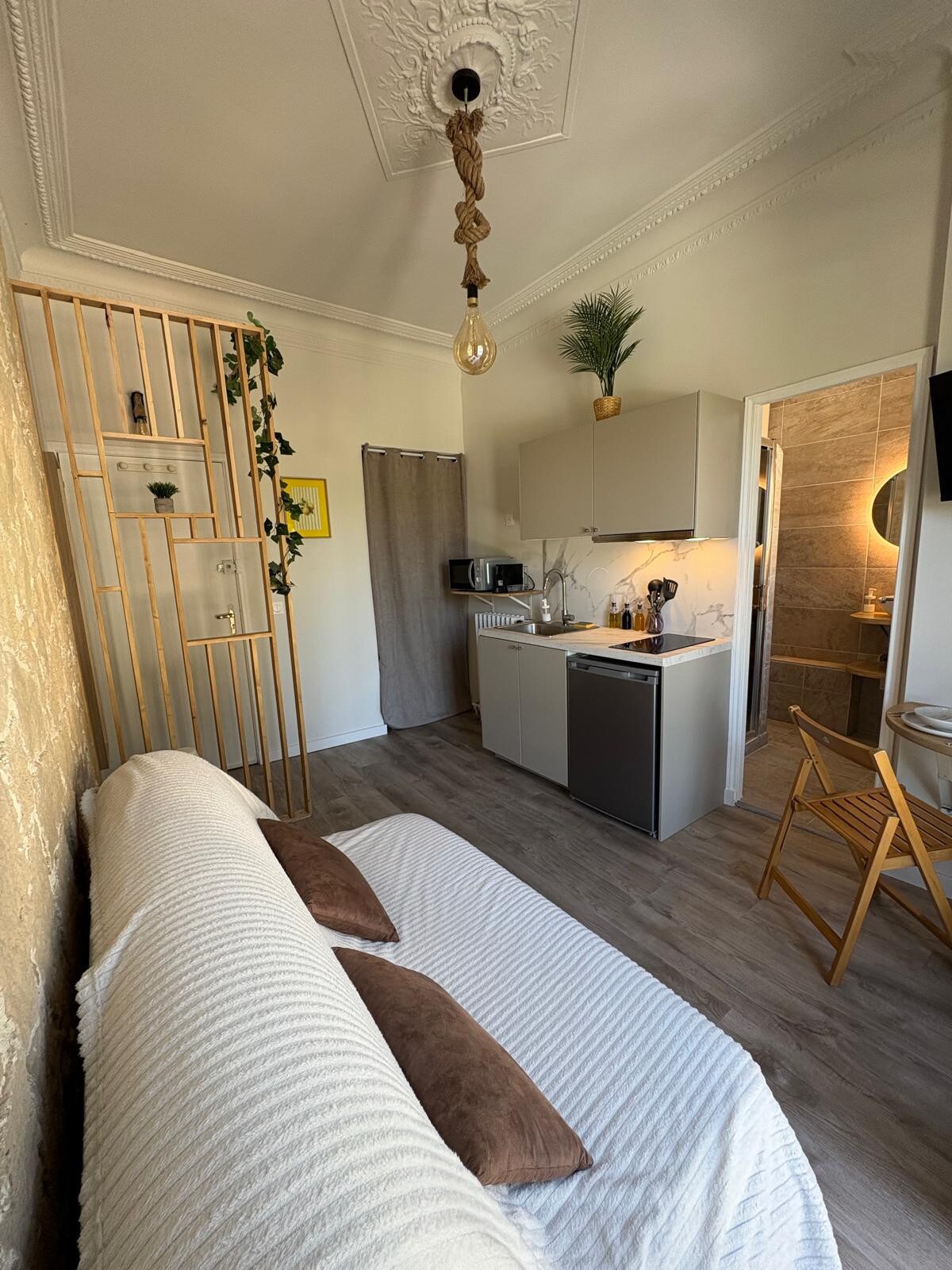 Welcome to this large, fully renovated 30 m² studio, located in a historic building that was once a convent. This atypical accommodation perfectly combines the charm of the old and modern comforts. Its small windows, typical of the architecture of the time, bathe the room in soft light and create a warm and intimate atmosphere. 📍 Ideally located, you are close to shops and transport while enjoying the tranquility of the place. (3 min walk from the tram).