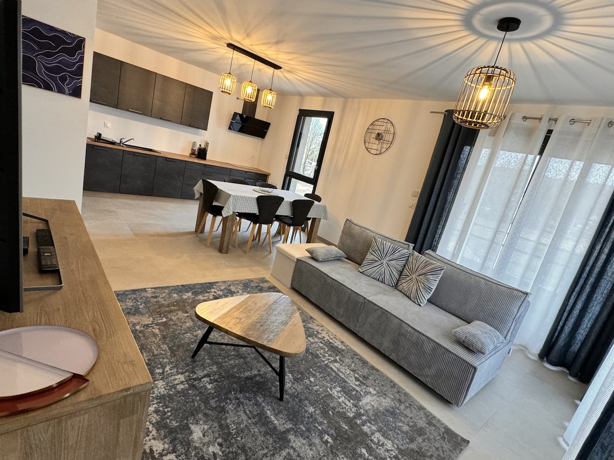 ● Brand new 45 m2 2-room apartment in small condominium Self ●check-in, very easy to access ● 1 free private parking space, if necessary possibility of having a 2nd ask me. ●1 double bed 160 and 1 sofa bed, the sofa bed house to accommodate 4 people max...... ●view of private garden quiet countryside● environment ●bathroom with bathtub dolce gusto coffee● machine ● if available, possibility to arrive before/leave later €8/hour, contact me before.