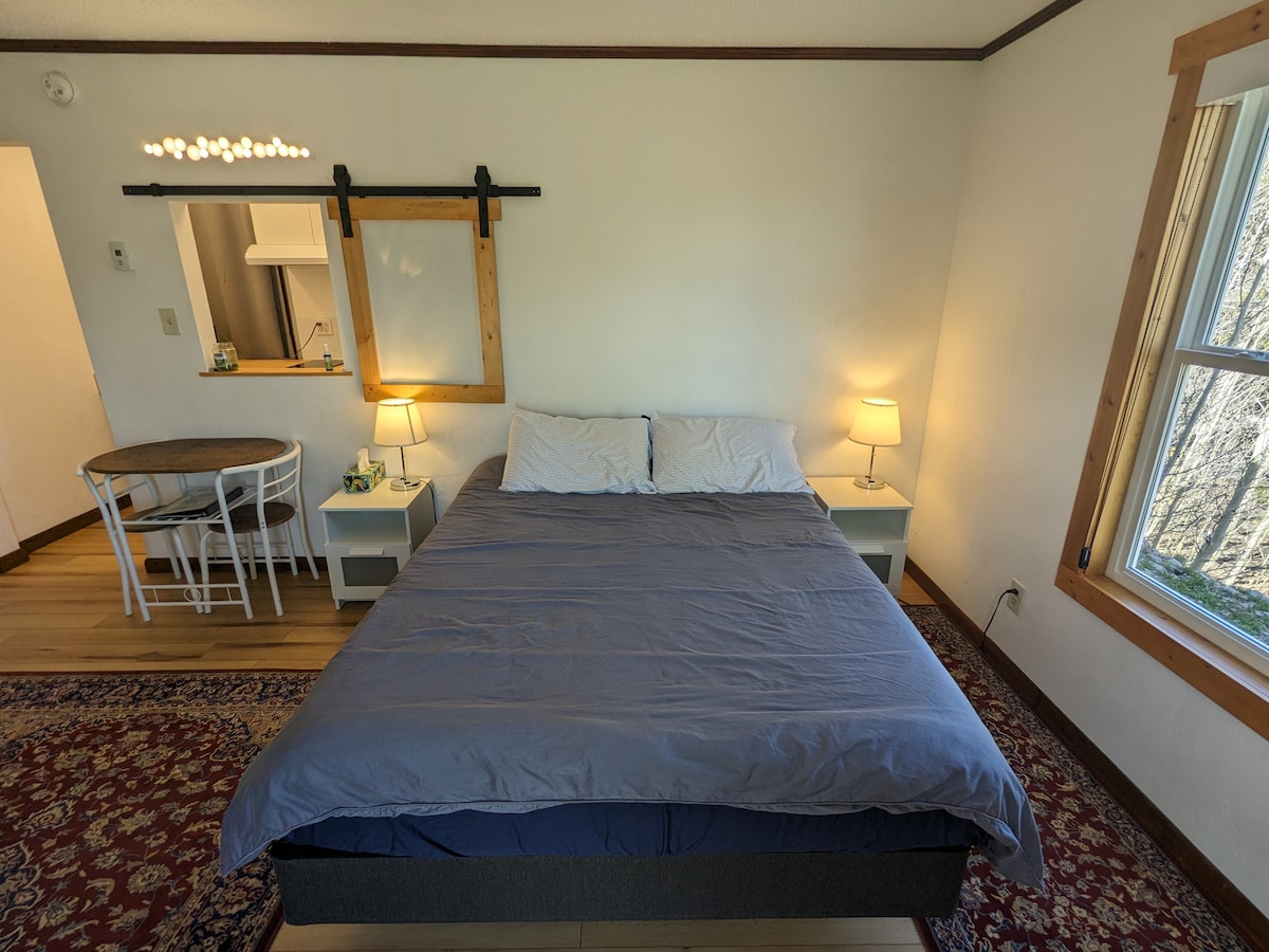 Studio apartment with king bed and full kitchen located in desirable Placer Valley subdivision in Alma, 12 miles to Breckenridge. Apartment is above the detached garage with private entrance. Relax with the creek right outside your door, amazing views, and quiet neighborhood. Great access to skiing, hiking, fishing, biking, 4x4, or simply take a walk along the south platte river that flows through the middle of the neighborhood in the valley.