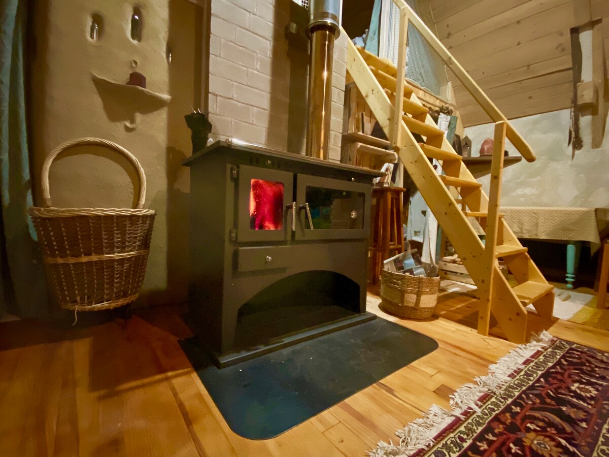 Unconventional accommodation in a green setting. You will hear the sound of birds and the song of the stream for a guaranteed rest with no other noises than those of nature. A romantic getaway as well for a cozy evening by the stove in winter or on a sunny terrace in summer. The rustic and minimalist aspects are also highlighted: dry toilets, reduced surfaces and layouts but executed with taste and simplicity.