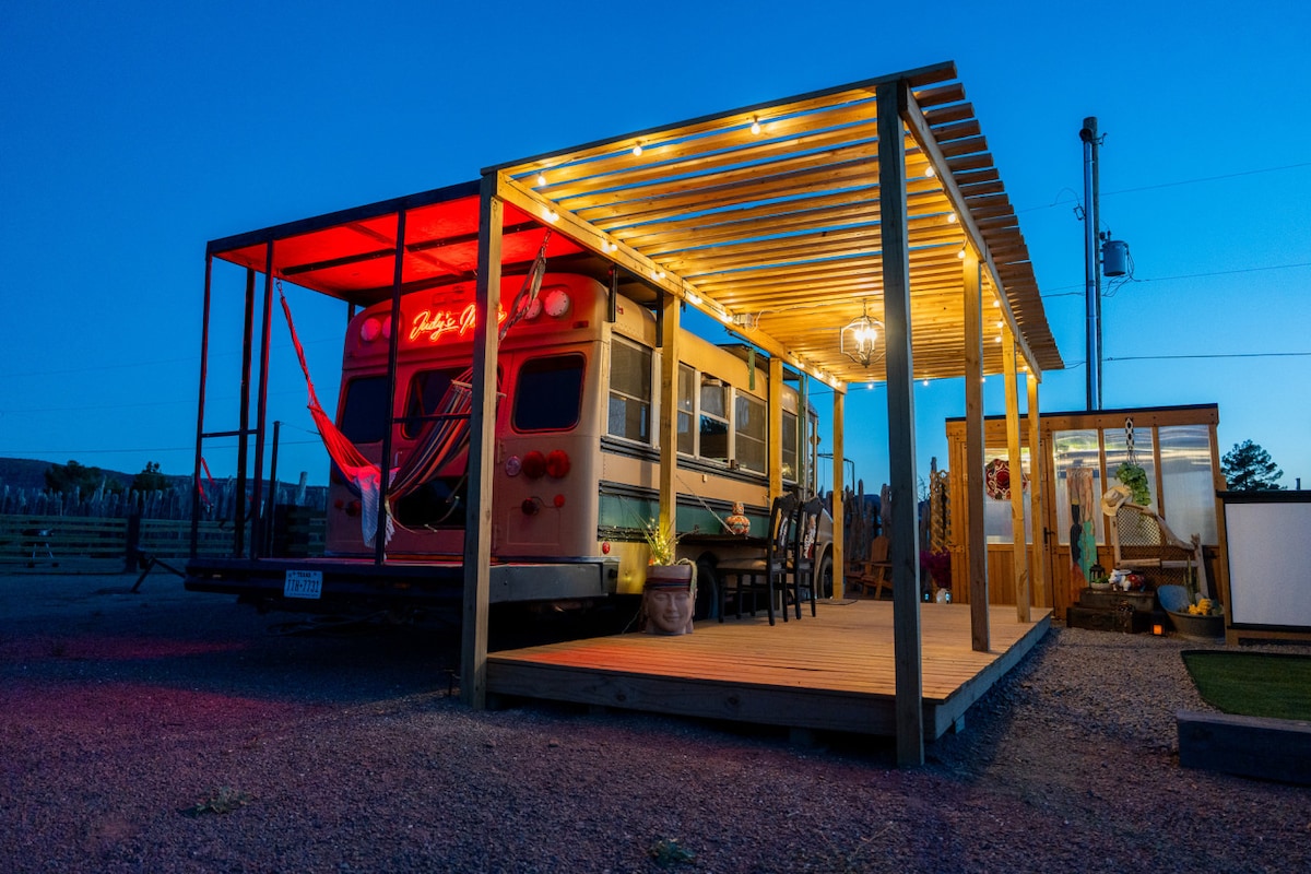 A well-maintained guesthouse with the feel of the Old West. Located far enough out of Alpine to give you a rural feel, but just minutes from downtown, the guesthouse is 30 feet from our house. We are very respectful of your privacy, and all of the facilities are yours to use. Sit out on the large covered porch and enjoy the view, or visit with our livestock. We are pet-friendly. Relax around the fire pit, or soak in the hot tub while watching the sky for shooting stars and satellites.