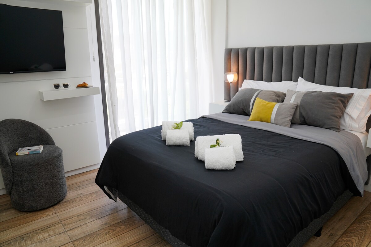 Modern and well-equipped apartment with private Jacuzzi, ideal for couples, families and business trips. It has 2 bedrooms and 1 bathroom, split air conditioning, Wi-Fi, HD TV with streaming platforms and a private work area. Includes a full kitchen, washing machine, private balcony, separate entrance, and elevator access for added convenience.