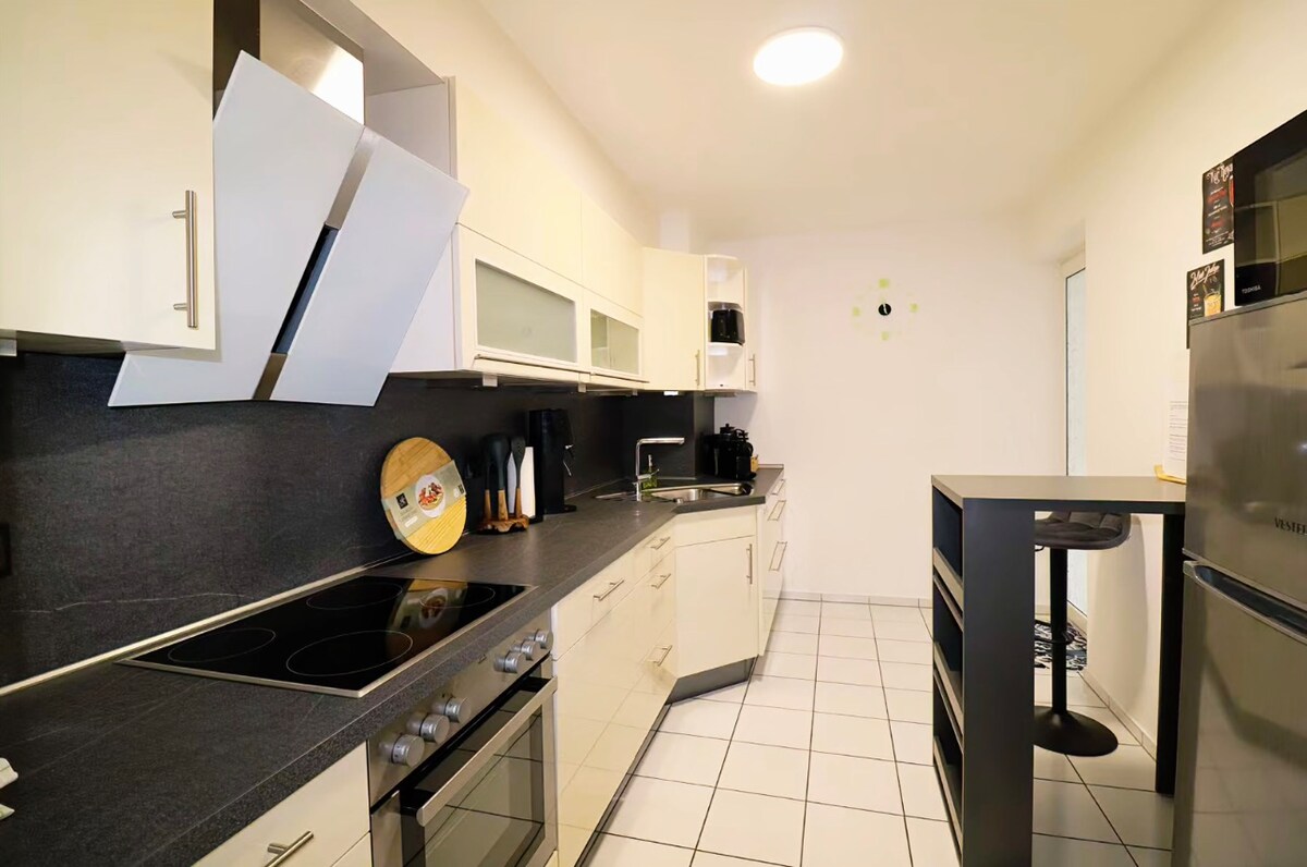 A fully equipped 82 sqm apartment for 7 people with garden and cozy. garden lounge. The accommodation, including The outdoor area can be fully used. The master bedroom has 2 single beds, 180 × 200 and a sofa bed 140 × 200. The bed in the second bedroom is 140 × 200. Each room has a desk and Wi-Fi. The apartment has an equipped kitchen, a large bathroom with shower and sauna. There is also a folding bed 90 × 200, a children's travel bed 60 × 120, and a highchair.